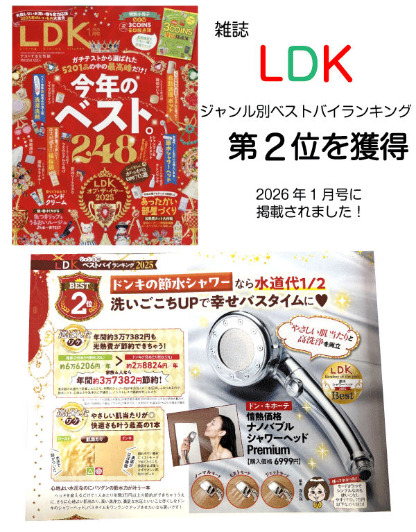 「LDK」に「ナノバブルシャワーヘッド Premium」が紹介されました。