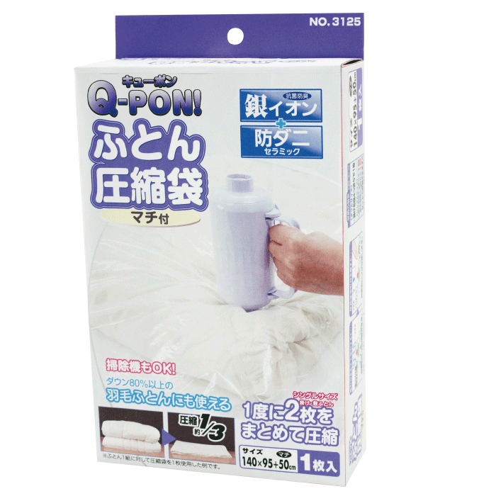 Q-PON!防ダニふとん圧縮袋マチ付1P